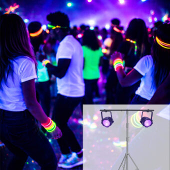 Our Black Light Package 1 is one of our most requested setups for high school dances, performances, and glow-style yoga classes — because it delivers big impact without complicated equipment.