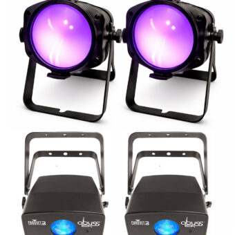 Along with two powerful black light cannons, this package includes two of our popular LED Water Effect Projectors, which casts moving, rippling light across the floor or ceiling. Combined with the intense UV glow from the cannons, the result is an immersive atmosphere that feels energetic, modern, and unforgettable. Whites shine, neon colors pop, and flowing light patterns add motion and depth to the space.