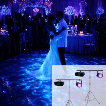 Our Black Light Package (with Water Effect Projectors) is a crowd favorite for high school dances, performances, and glow-style yoga classes because it doesn’t just light the room — it transforms it.