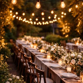 The exposed Edison-style bulbs cast a warm, flattering light that encourages guests to relax, mingle, and stay awhile. Strung overhead or along beams and fences, they create that magical canopy effect that feels both timeless and intentional.
