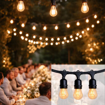 Designed for real events (not just decoration), these lights feature a heavy-duty, weatherproof cord suitable for indoor or outdoor use. You can connect up to 8 strands end-to-end, covering up to 384 feet, making it easy to light large patios, tents, courtyards, or reception halls with a single continuous run.