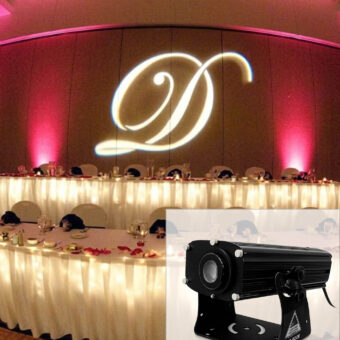 Our Ultimate HD Gobo Projector delivers the brightest, sharpest projection of any gobo light in our inventory — and it’s fully outdoor-rated, meaning it’s safe to use in rain or snow. This is the projector you choose when you want your custom logo, monogram, or message to be seen from a distance.